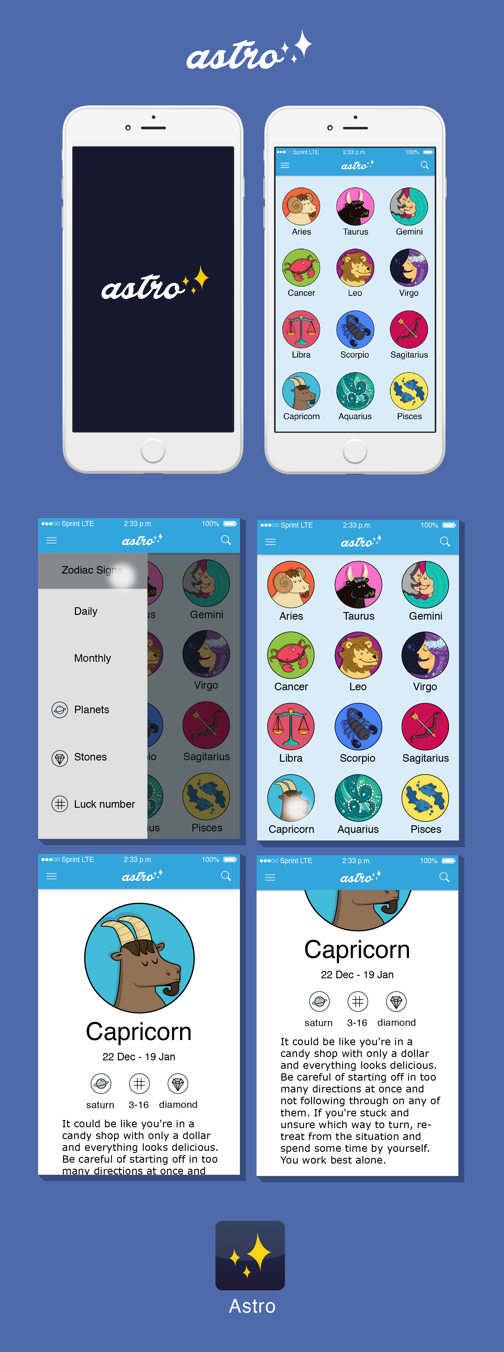 Statistics showed that is very important to innovate with new applications of information and the market of application is increasing, so they are working to keep their place in the new generation. This kind of topics are in the website, but was not enought, so they proposed to design a mobile application with the latest upgrades of the horoscope, with a friendly content and easy to navigate.